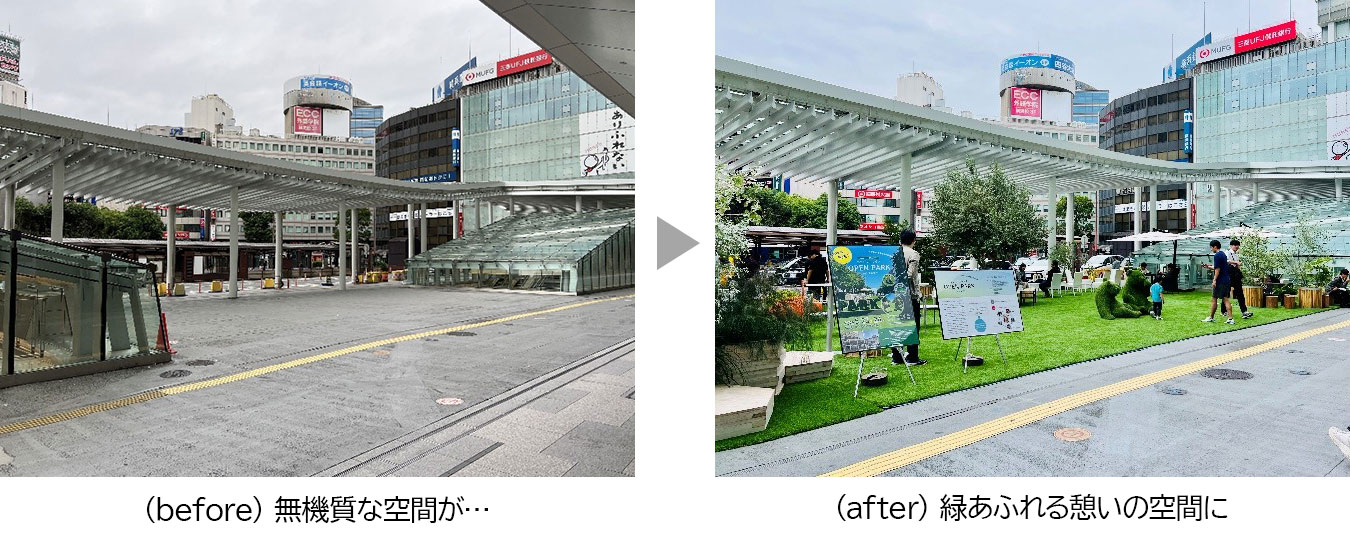 Since then, we have continued to conduct such social experiments in various locations, and most recently, on May 23rd and 24th, 2025, we conducted the "Yokohama Station Central West Exit Plaza Parkization Social Experiment: Yokohama Nishiguchi OPEN PARK #01 Ekimae" at the west exit of Yokohama Station.