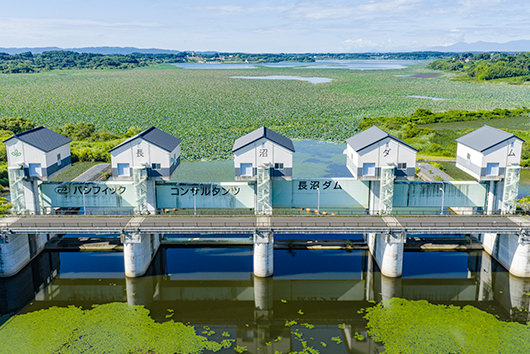The Hasama River, a Class A river in northern Miyagi Prefecture, frequently floods and is nicknamed the "Wild River." In 1971, a comprehensive flood control plan was drawn up to build 10 dams and one retarding basin, with Naganuma Dam, which utilizes natural lakes and marshes, at the center of the plan. However, the surrounding area is low-lying marshland with continuous soft ground. No dam had ever been built on such soft ground before. Four people who supported this difficult construction project, which lasted 40 years, from planning to completion: Tetsuo Komoriya, General Manager of Section of Renewable Energy Promotion/Development Sec. of the River Basin Structural Dept. Land Infrastructure Div.; Takehiko Hiratsuka of the Dams and Erosion Control Office of the same department; Atsushi Funayama Geotechnical Engineering Dept. of the same headquarters; and Ken Okaya of the Tohoku National Infrastructure Project Headquarters, look back on the efforts.