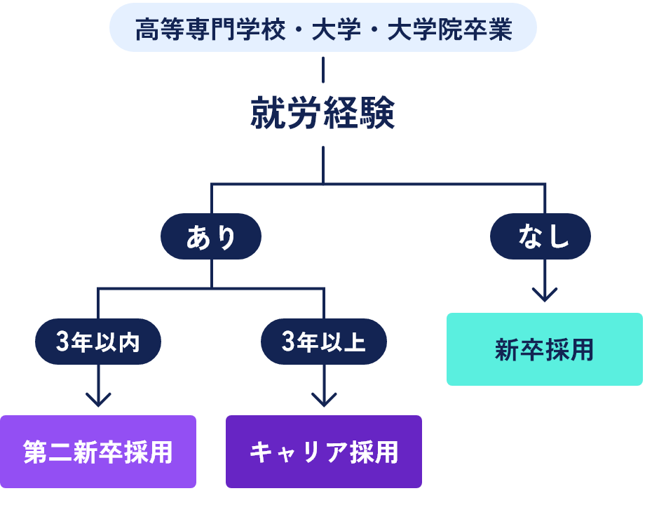 就労経験がない場合は、新卒採用扱いとなります。当社では通年採用を行っておりますので、直近の卒年の新卒採用エントリーからご応募ください。